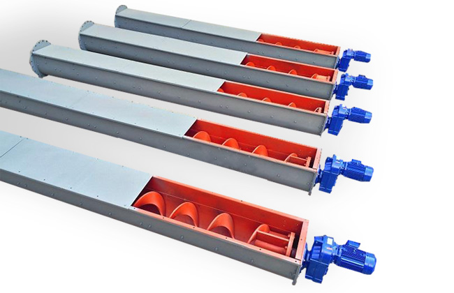 U型螺旋輸送機工作時,電機帶動旋轉的螺旋葉片將物料推移而進行輸送,螺旋輸送機旋轉軸上焊的螺旋葉片,葉片的面型根據輸送物料的不同有實體面型、帶式面型、葉片面型等型式。使物料不與螺旋輸送機葉片一起旋轉的力是物料自身重量和螺旋輸送機機殼對物料的摩擦阻力。
